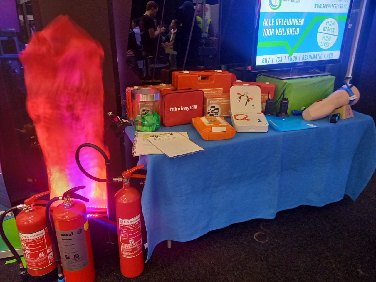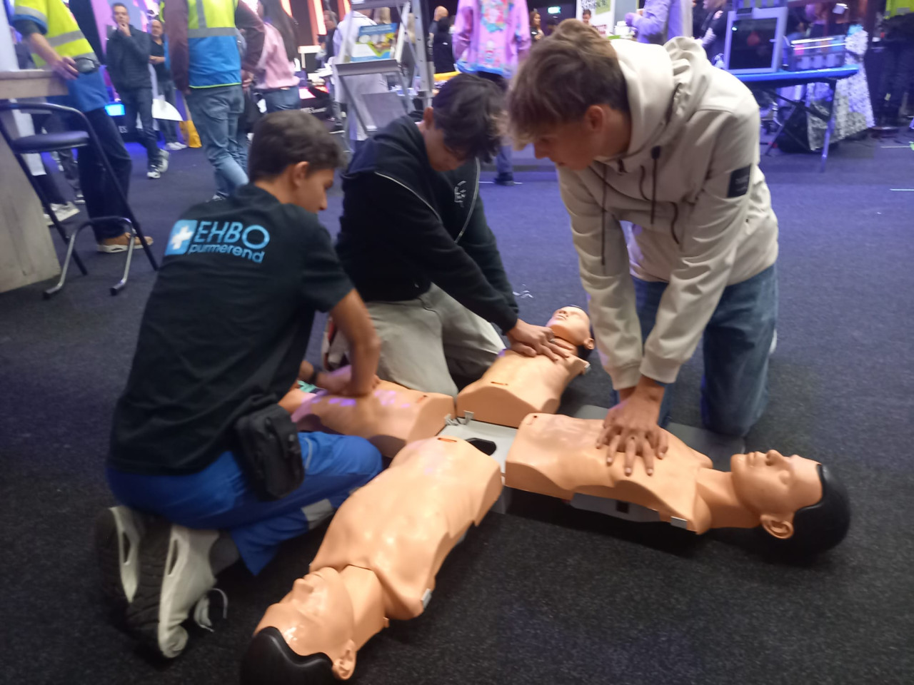 Ook EHBO Purmerend en BHV Waterland waren aanwezig. De EHBO-ers liepen regelmatig hun ronde langs de diverse stands. Ook waren wij aanwezig om de EHBO te promoten en te laten zien hoe belangrijk het is om een EHBO-diploma te hebben. Naast de "drugs-brillen" kon je ook zelf oefenen met reanimeren op één van de poppen. Dit leek voor veel bezoekers toch makkelijker dan het was.